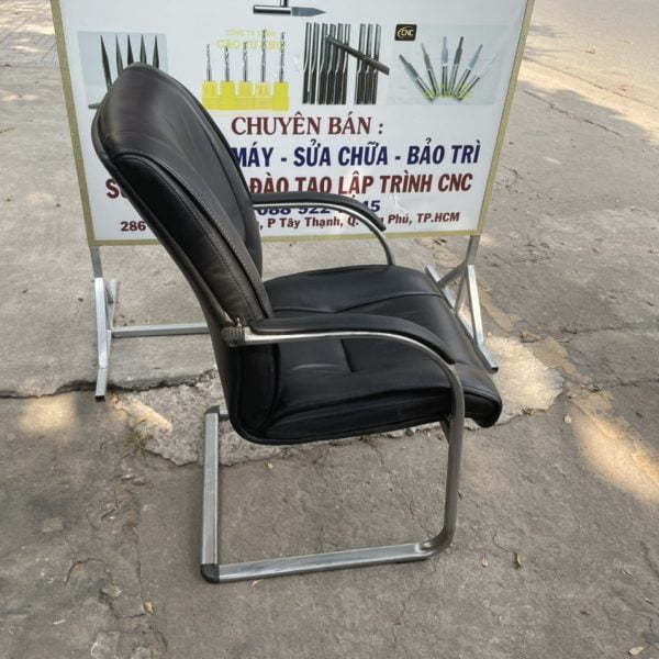 Ghế xoay cũ bọc simili có tay vịn bọc simili màu đen là dòng ghế thanh lý cao cấp, phù hợp cho các văn phòng theo phong cách hiện đại, cần tối ưu chi phí mà vẫn đảm bảo tính thẩm mỹ và độ bền. Khung chân ghế làm từ inox loại dày chắc chắn, chịu lực tốt, thiết kế dáng quỳ tạo sự ổn định khi ngồi. Phần đệm và lưng ghế bọc simili màu đen cao cấp, dễ vệ sinh, mang lại cảm giác ngồi êm ái và chuyên nghiệp. Ghế được trang bị tay vịn cố định giúp tăng sự thoải mái khi sử dụng, thích hợp dùng làm ghế nhân viên, ghế họp, ghế hội nghị hoặc dùng tại phòng tiếp khách. Hàng đã qua sử dụng nhưng còn mới đẹp, tiết kiệm đáng kể chi phí đầu tư ban đầu cho doanh nghiệp.