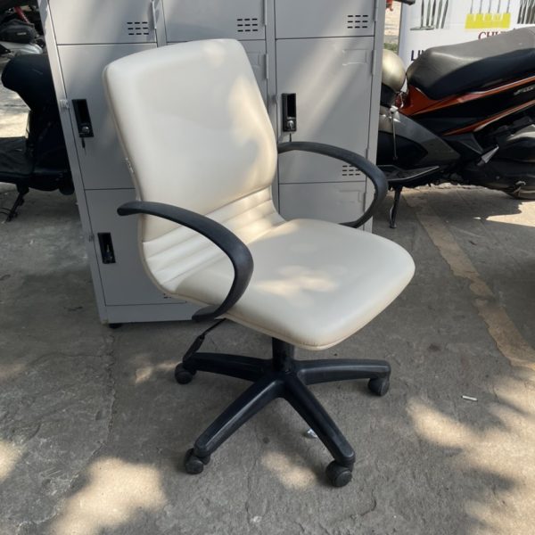 Tình trạng: Ghế xoay lưng trung cũ bọc simili màu kem này là sản phẩm đã qua sử dụng được chúng tôi thu về và xử lý lại như mới đến 95%, sản phẩm cứng cáp và sạch sẽ, mua về là có thể sử dụng ngay như ghế mới, đây là hàng cao cấp, tuy là hàng cũ nhưng chất lượng vượt trội hơn hẳn các sản phẩm hàng mới Trung Quốc trên thị trường hiện nay. Ben ghế rất khó bị hư hỏng, chỉ cần xem hàng là quý khách thích ngay, đặc biệt sản phẩm có số lượng lớn phù hợp cho quý khách hàng đang muốn setup bàn ghế văn phòng cũ giá rẻ.