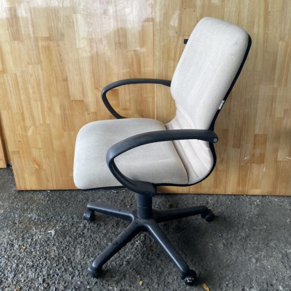 Ghế xoay lưng trung cũ có tay vịn màu kem, chuyên mua bán các sản phẩm bàn ghế văn phòng cũ chất lượng cao với mức giá tốt nhất hiện nay. Kho Thanh Lý HD là đơn vị uy tín số 1 về lĩnh vực cung cấp hàng thanh lý tại TPHCM và các tỉnh thành lân cận.