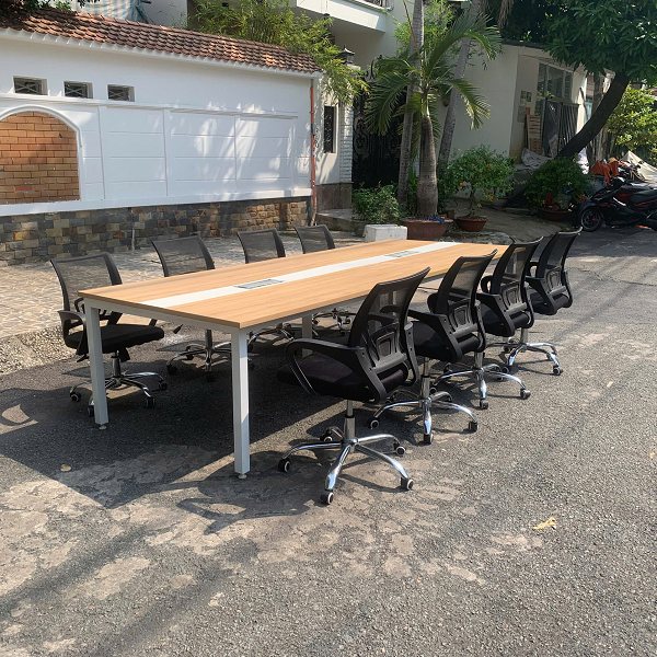 Bàn họp văn phòng 8 người là lựa chọn lý tưởng cho những doanh nghiệp đang tìm kiếm một chiếc bàn họp vừa sang trọng, vừa tiện ích. Với thiết kế hiện đại, bàn được trang bị sẵn hộp điện ngay trên mặt bàn, giúp kết nối các thiết bị điện tử như laptop, máy chiếu, điện thoại một cách nhanh chóng và gọn gàng. Bàn có sức chứa từ 8 – 10 người, đáp ứng tốt nhu cầu cho các cuộc họp quy mô vừa và lớn.