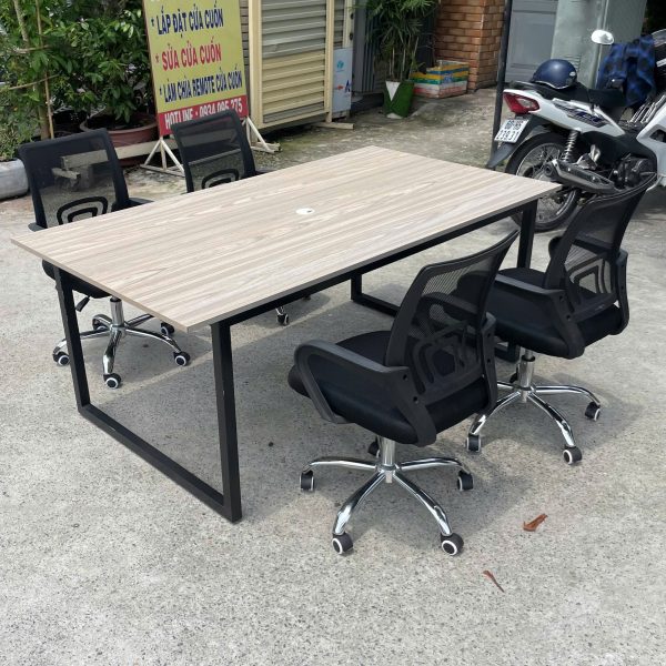 Bàn ghế văn phòng thanh lý, bàn họp văn phòng thanh lý, bàn họp cũ, bàn họp chân sắt, bàn họp 1m8 giá rẻ, bộ bàn họp 1m8 kèm 6 ghế xoay cao cấp - Chất liệu: