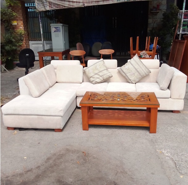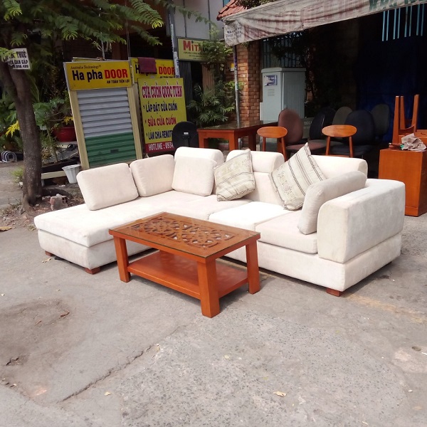 Thanh lý bộ sofa bọc vải chữ l kèm bàn